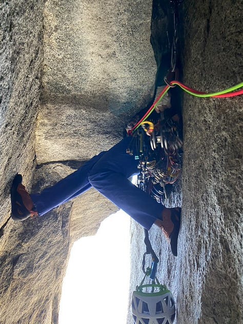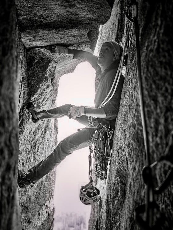 How do we ever know we’re ready for our next challenge? Maybe that’s the point—we don’t. I’m not sure what exactly pulls me back to rock climbing as I’ve had my share of close calls. Moments in which death leans in and whispers, “Next time, you’re mine.” Even when I walk away unscathed, it lingers. In the dead of night, I jolt awake thinking about the runouts where a fall would’ve meant paralysis, a broken ankle would’ve required a helicopter rescue, or where hesitation in an unexpected storm could’ve meant a night spent unprotected in the wilderness. One moment, everything is perfect; the next, it can be a fight for survival. And yet, I keep coming back. I can’t explain it, but I also can’t picture my life without it.